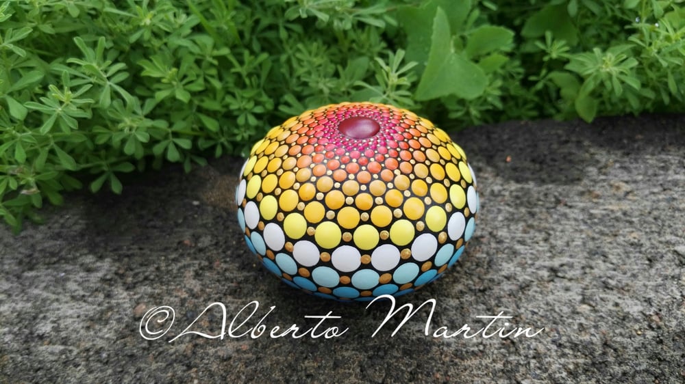 $200.00SPRING 2-2022. Rainbow Mandala painted stone by Alberto Martin. Mandala stone -