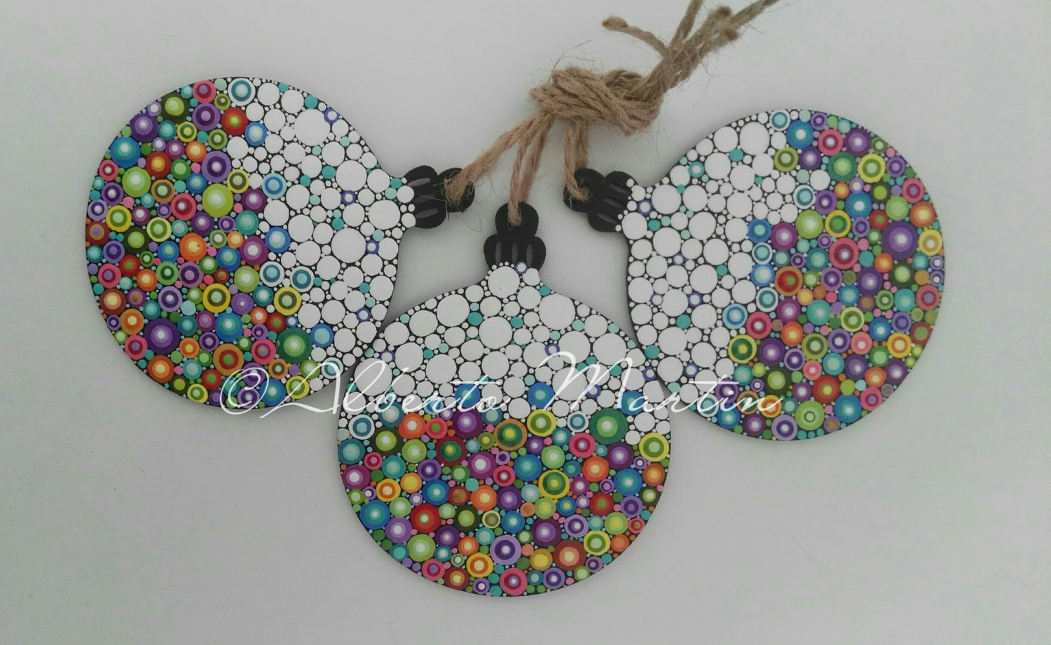 Beautiful and delicate painted dot a dot Christmas tree wooden ornaments.